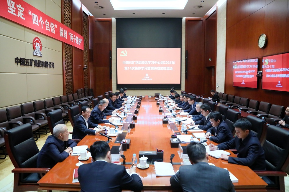 12月24日,中国五矿党组理论学习中心组召开调研成果交流会,深入学习贯彻习近平总书记重要讲话和重要指示批示精神,着力把调研成果转化为推动企业高质量发展的生动实践和实际成效。党组书记、董事长陈得信主持会议并讲话。党组成员围绕“穿透式监管”“链长链主制”“党建赋能”“工程项目党建”“一体推进‘三不腐’”等主题依次汇报调研成果,并开展交流研讨。