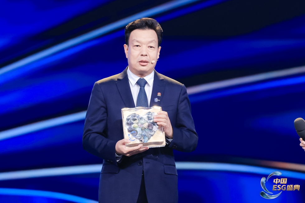 活动现场,中国石化、中国五矿、中国中车、中国邮政、中国农业银行、牧原集团、海天味业等7家年度榜样企业代表先后登台,以“一方水土”信物为引,讲述各自在ESG领域的深耕与探索。中国五矿以28颗矿石组成的“矿心”为信物,既展示企业在全球41座矿山重点开发的28个矿产资源品种,也蕴含“初心使命、核心功能、同心筑梦、凝心聚力”四层深刻寓意。